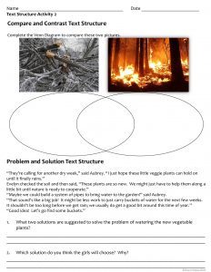 Practice with four text structures is provided in the activities.  The text structures addressed are:  descriptive, cause and effect, compare and contrast, and problem and solution.